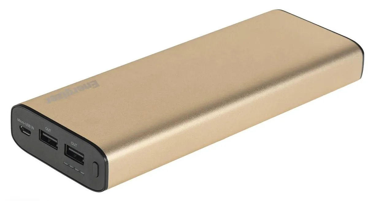 محصولی که مشاهده می‌فرمایید می‌تواند تمام نیازهای شما برای شارژ گوشی موبایل و دیگر دستگاه‌های هوشمندتان را هر جایی که باشید برطرف کند. پک شارژر دیواری و شارژر همراه را می‌توانید همه جا به همراه خودتان حمل کنید. حتی اگر از افرادی باشید که هیچ اعتقادی به پاوربانک‌ها نداشته باشند، مطمئنا روزی گذرتان به این محصولات خواهد خورد. شرایطی را تصور کنید که در حین سفر هستید و دسترسی به برق ندارید یا برق خانه‌تان رفته و استفاده‌ی مبرمی به گوشی هوشمند‌تان دارید. در این صورت به ضروری بودن این دستگاه‌ها در کنار دستگاه‌های شارژی پی خواهید برد. قبلا برای بیشتر روشن نگه‌داشتن دستگاه­‌ها از باتری اضافی استفاده می‌­شد؛ اما این روزها پاوربانک‌­ها کار را ساده کرده­‌اند. شارژر همراه یا پاوربانک همان‌طور که از اسمش برمی‌آید برای شارژ موبایل، تبلت، لپ‌تاپ، هدست بلوتوث و دیگر دستگاه‌های از این قبیل مورد استفاده قرار می‌گیرد. از پاور بانک مواقعی که به برق شهری دسترسی ندارید می‌توانید بهره ببرید. پاوربانک در واقع از تعدادی باتری فشرده که در یک مدار مشخص قرار گرفته، تشکیل شده است. به کمک باتری‌هایی که داخل پاوربانک تعبیه شده‌اند می‌توان انرژی الکتریکی را ذخیره کرد و در مواقع اضطراری برای شارژ موبایل و تبلت از آن استفاده کرد. یکی از انواع این محصولات، شارژر همراه شرکت انرجایزر است. پاور بانک انرجایزر از دو درگاه خروجی USB بهره می‌برد؛ از این رو می‌توانید 2 دستگاه مختلف را به طور همزمان شارژ کنید. این شارژر همراه 20100 میلی آمپر ساعت ظرفیت دارد. بدنه‌ی این شارژر همراه فلزی است و از کیفیت ساخت مطلوبی بهره می‌برد. استفاده از مواد اولیه‌ی با کیفیت در کنار طراحی زیبا و شیک باعث شده استفاده از UE20100 حس خوبی به شما منتقل کند. این شارژر همراه مانند اکثر محصولات مشابه دارای درگاه‌های ورودی و خروجی 5 ولتی است. موضوعی که باعث ایجاد تمایز بین پاوربانک‌ها می‌شود میزان شدت جریان ورودی و خروجی است. شدت جریان براساس واحد اندازه‌گیری آمپر محسابه می‌شود. شدت جریان ورودی و خروجی در این پاوربانک به ترتیب 2.0 و 2.4 آمپر بوده که این میزان شدت جریان باعث می‌شود هم باتری پاوربانک و هم باتری گوشی موبایل شما با سرعت بیشتری شارژ شود.